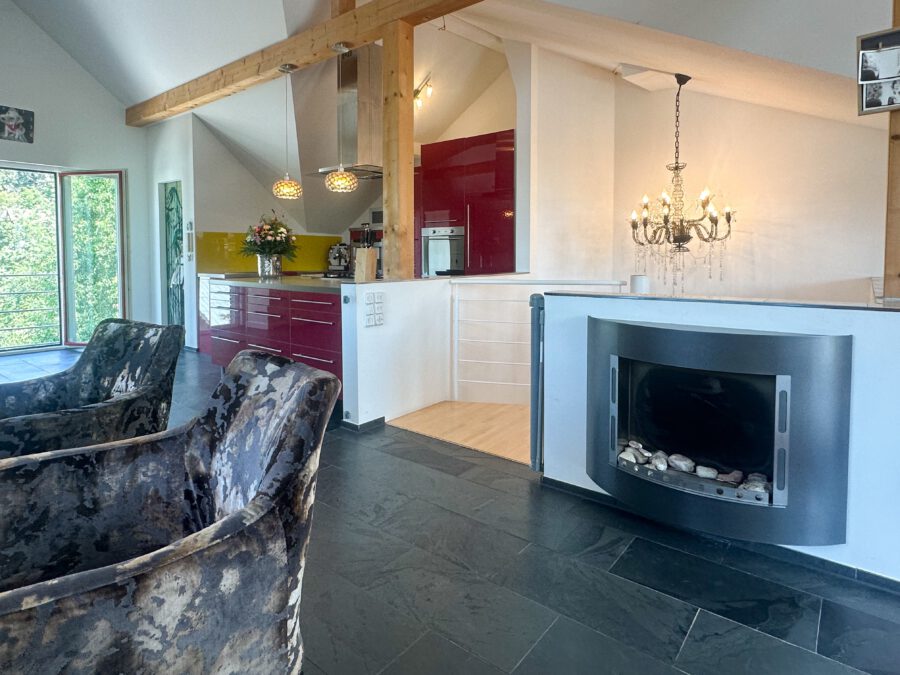 Das Haus besticht durch seinen offenen, lichtdurchfluteten Grundriss und hochwertigste Materialien in jeder Ecke. Der offene Sichtdachstuhl im Dachgeschoss verleiht den Räumen eine besondere Weite und Eleganz. Eine luxuriöse Einbauküche mit Kochinsel und edlen Oberflächen lädt dazu ein, kulinarische Köstlichkeiten in einem stilvollen Ambiente zu zaubern. Ein behaglicher Kamin sorgt im Wohnbereich für eine gemütliche Atmosphäre an kühlen Abenden.