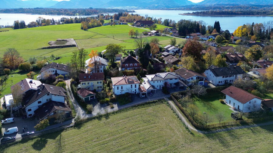 Das Objekt befindet sich in exponierter Lage und nahe dem Chiemsee. Die dazugehörige Gemeinde ist infrastrukturell gut angebunden, durch das Straßennetz sowie die Busverbindungen zu den Bahnhöfen Prien und Bad Endorf. Das Einkaufen ist in der Region gut möglich. Alle Schulen, Ärzte und Krankenhäuser, sowie Supermärkte und diverse Einzelhandelsgeschäfte befinden sich im etwa 8 Kilometer entfernten Prien. Die Wohnlage wird auf Grund des sozialen Umfeldes und der wunderbaren Lage als sehr gut eingestuft. Von dem Objekt aus erreichen Sie die malerische Getreidegasse in Salzburg in nur 45 Minuten.