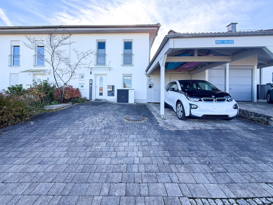 Vor dem Haus stehen ein Carport mit Wallbox sowie weitere Stellplätze für ein bis zwei Fahrzeuge zur Verfügung.