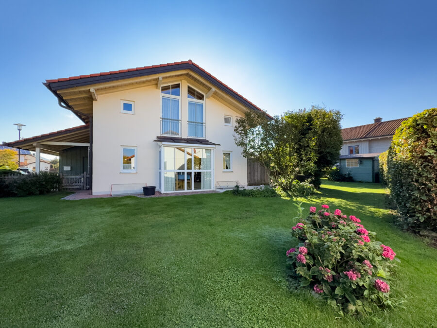Dieses charmante Einfamilienhaus wurde im Jahr 2000 vom jetzigen Eigentümer mit viel Liebe zum Detail und hochwertigen Materialien erbaut. Es befindet sich in einer ruhigen, verkehrsberuhigten Wohnlage von Tacherting und eignet sich ideal für Familien, Paare oder anspruchsvolle Einzelpersonen, die Wert auf Wohnqualität und Ruhe legen.