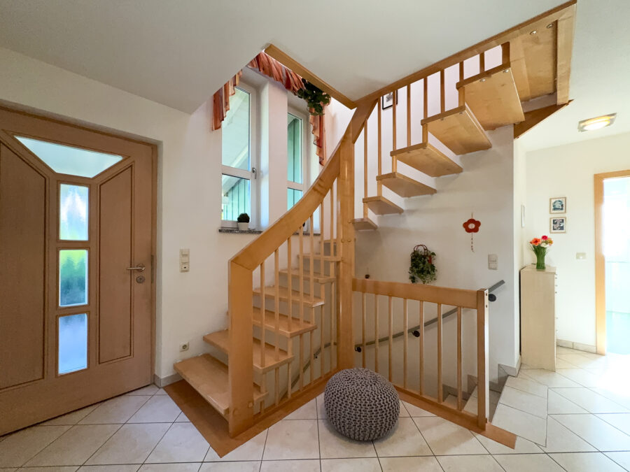 Bereits beim Betreten des Hauses empfängt Sie eine großzügige Diele mit offenem Treppenhaus, die ein angenehmes Raumgefühl vermittelt.