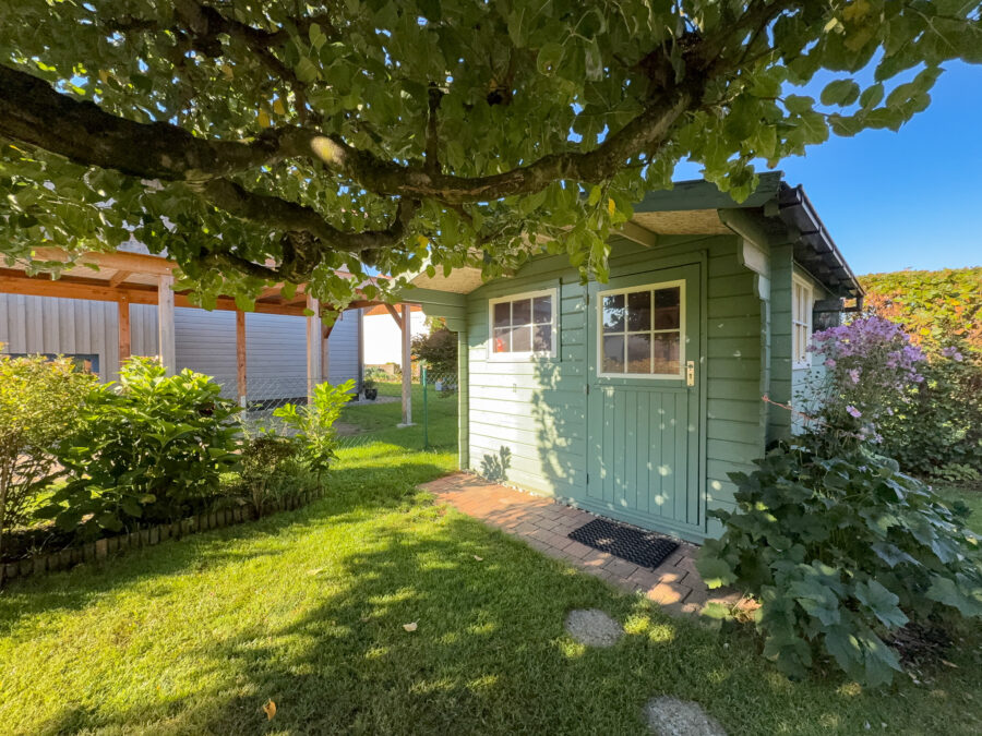 Der liebevoll angelegte Garten ist eingewachsen und sehr ruhig gelegen – eine grüne Oase der Erholung. Hier finden Gartenliebhaber, Familien mit Kindern oder Ruhesuchende den idealen Ort zum Entspannen, Spielen oder kreativen Gärtnern.