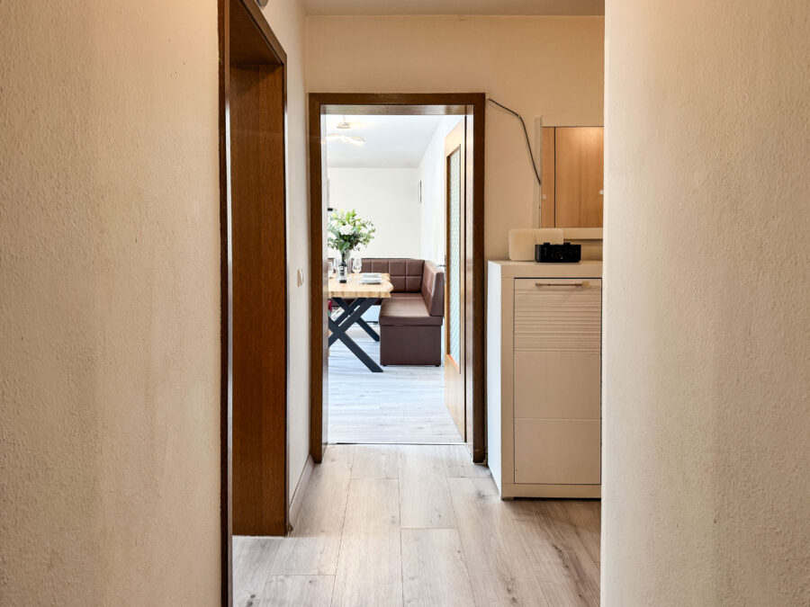 Die Wohnung ist nicht renovierungsbedürftig, dennoch empfehlen sich an einigen Stellen dezente Schönheitsarbeiten: ein frischer Anstrich, ein neuer Bodenbelag oder eine modernisierte Küche können das ohnehin angenehme Ambiente zusätzlich aufwerten. So entsteht mit wenig Aufwand ein ganz persönlicher Rückzugsort zum Wohlfühlen.