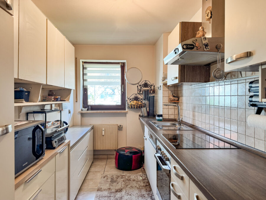 Auch die Küche bietet ausreichend Platz für eine kleine Essecke – ideal für den ersten Kaffee am Morgen oder das gemeinsame Kochen am Abend.