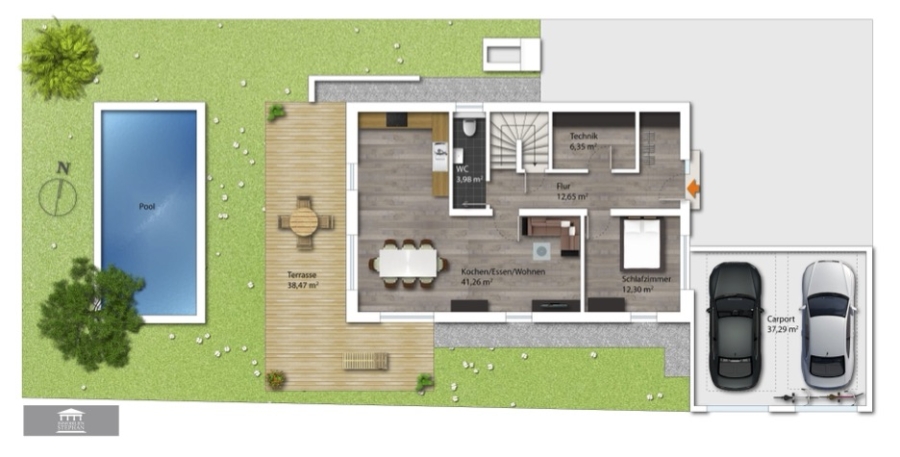 Zu den Highlights dieser Immobilien zählen: der beheizte Outdoorpool, 4x8 Meter, die Photovoltaikanlage, das moderne, offene Raumkonzept, helle und freundliche Räume mit viel Tageslicht, die hochwertige, massive Bauweise sowie die zentrale Lage mit Nähe zum Chiemsee und zur Natur. Der großzügige Garten am Waldrand lädt zum Entspannen, Spielen und Gärtnern ein. Zudem verfügen die Häuser über einen Doppelcarport, der ausreichend Platz für Fahrzeuge bietet. Die ruhige, grüne Umgebung bietet den perfekten Rückzugsort, während die Nähe zu urbanen Einrichtungen den Alltag erleichtert.