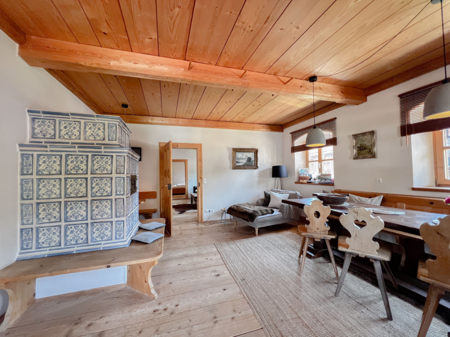 Inmitten des idyllischen Ortes Grassau, in einer ruhigen Anliegerstraße, steht dieses einzigartige Denkmalobjekt. Das charmante Haus verbindet historische Substanz mit modernem Wohnkomfort und wurde 2020 umfassend generalsaniert. Derzeit sind zwei separate, stilvoll eingerichtete Wohnungen vorhanden, die vollständig möbliert, als hochwertige Ferienwohnungen vermietet werden und über separate Eingänge verfügen. Jede Einheit überzeugt durch ihre geschmackvolle Ausstattung und das harmonische Ambiente, das den Charme der Immobilie unterstreicht. Eine Zusammenlegung der Einheiten ist Problemlos möglich, ursprünglich handelte es sich um ein Einfamilienhaus.